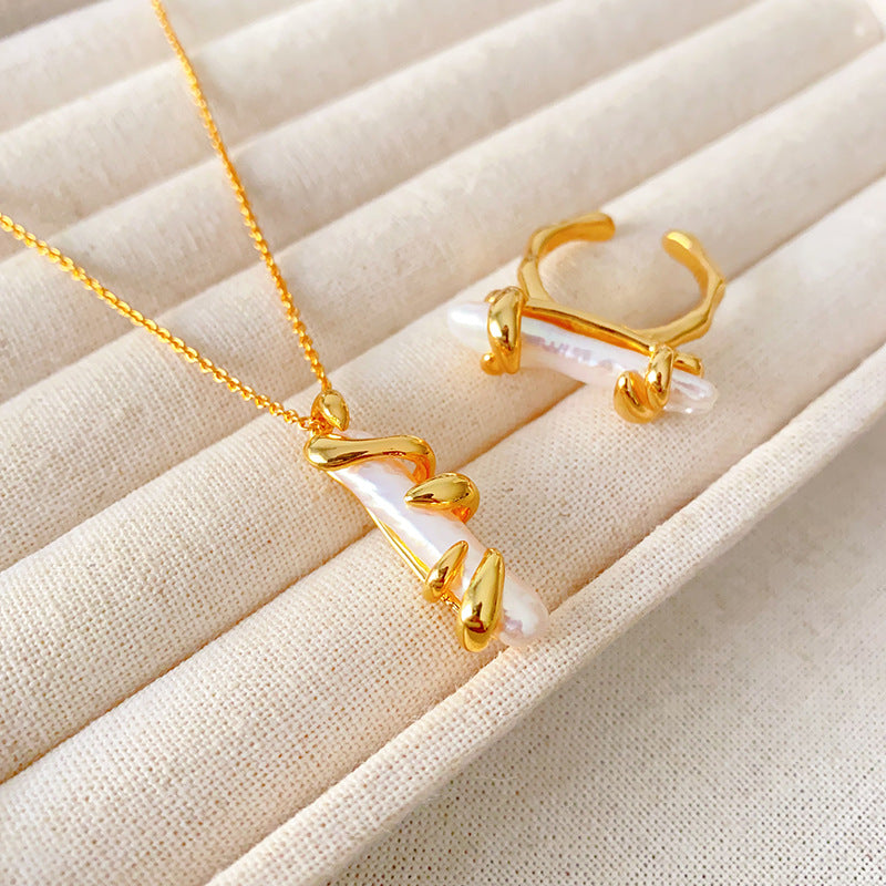 Product information: Processing method: Electroplating Color: Necklace, ring Material: Copper Trendy element: Pearl